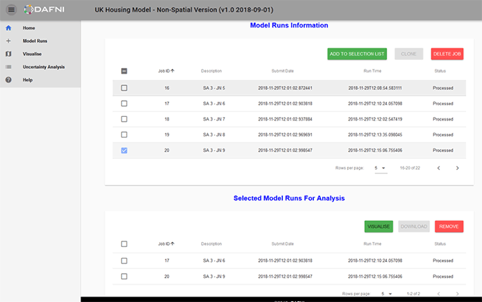 Dr Ronald Fowler of the DAFNI Pilot Team said: “Collaborating with INET’s Housing Project has greatly influenced the enhancement of the functionality of the DAFNI platform. The focus has been on the design of a system which can perform different types of model runs in parallel, thereby allowing for a more efficient analytics process. In addition to this, a process has now been outlined through which sensitivity analysis can be introduced for any model. This will have wide reaching applications for future models brought onto the DAFNI platform and will offer a greater level of functionality for its users.”