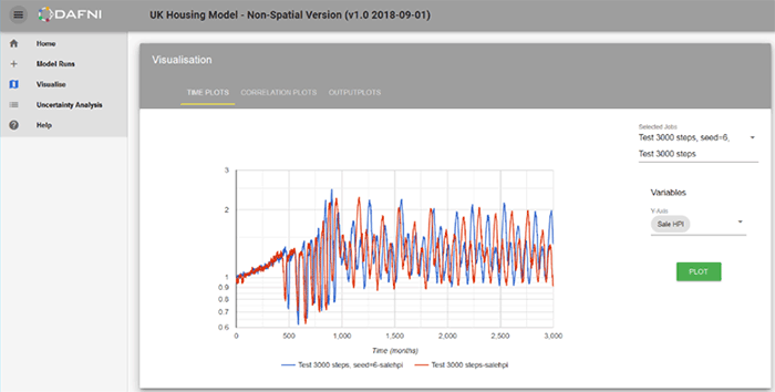 Integrating these innovative housing models within the platform has been the most recent challenge tackled by the DAFNI Pilot Team. Currently developed by INET’s Dr Adrián Carro the first of the two housing models provides a useful tool for ascertaining how interest rates and other economic factors affect the UK’s housing market as a whole: in particular its stability. The second model, being developed in association with the EPSRC MISTRAL Project, is a more advanced spatial version and although the fundamentals are the same, it gives greater insights as follows: