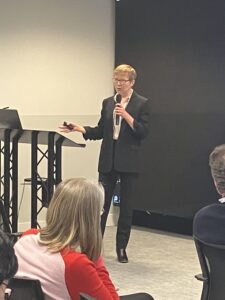 Dr. Liz Varga (left) and Dr. Joanne Leach (right) speaking at the DINI showcase